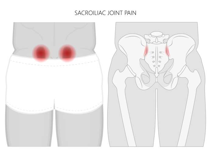 The SI joint becomes painful when the ligaments that support this joint are too loose or too tight. There are numerous causes, including traumatic injury, pregnancy, an uneven pelvis, or surgery such as a lumbar fusion.
